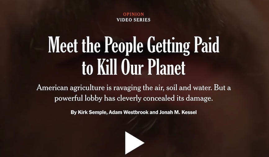 What I’m reading: Lots of tweets about this NYT op-ed video. My take is, yes, the voiceover and teeth gnashing are kind of cringy, Jayson Lusk is an economist and shouldn’t have been included in a list of lobbyists, but the research in this piece is solid. Read more Jennifer Jacquet.